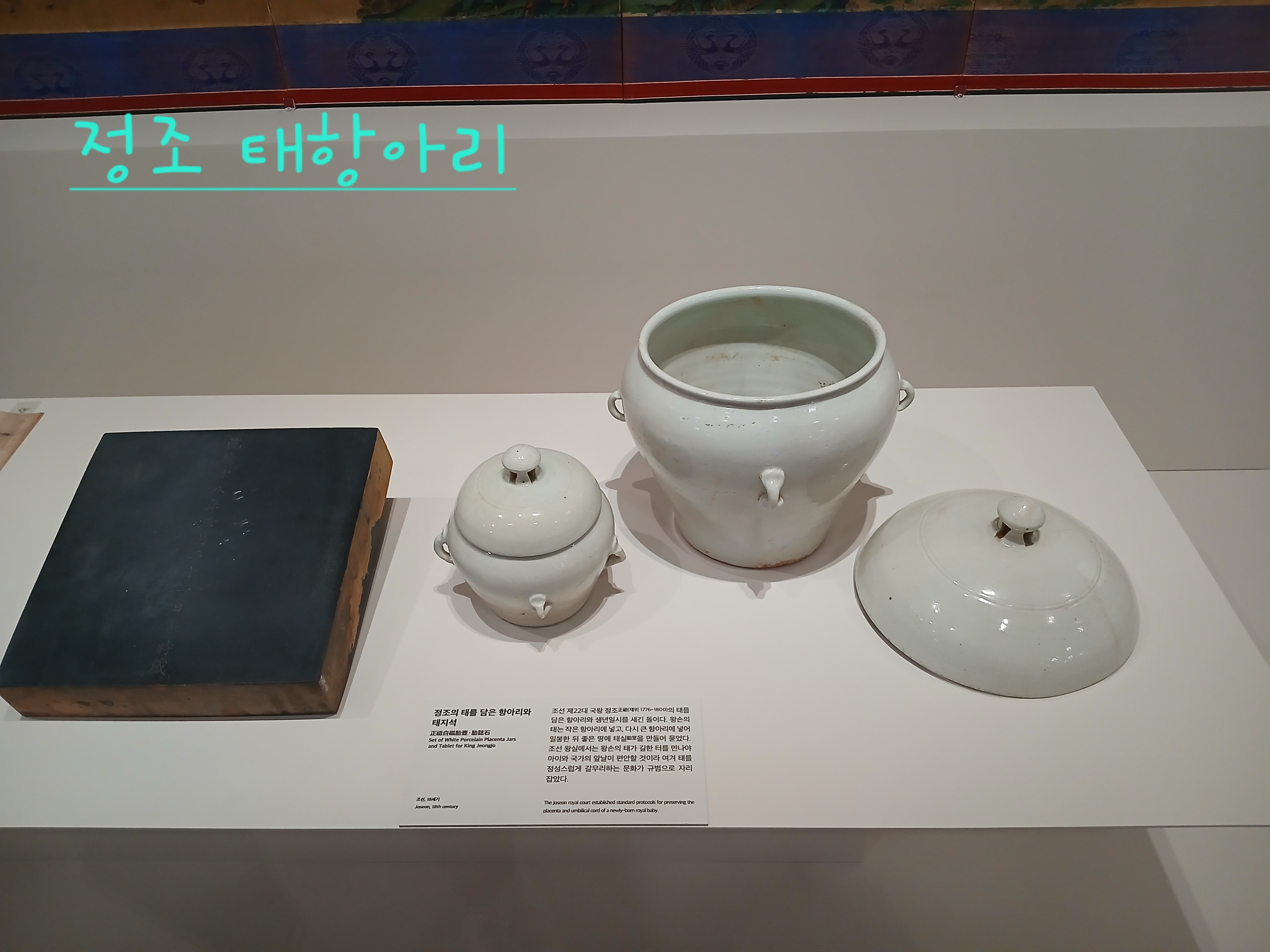 전시실에는 정조의 태항아리가 있어서, '저기에 정조의 태가 담겼었구나~' 하고 생각하며 바라봤습니다.